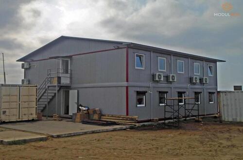 Данный вид быстровозводимых домов чаще всего изготавливается на основе 6 или 8 блок-контейнеров, расположенных в 2 этажа друг на другом. Лестница может быть, как внутренней, так и наружной. Крыша - двухскатной или односкатной. Внутренняя планировка и отделка таких строений очень разнообразна, часто комбинируется в помещениях разного назначения. Кроме этого, поставляем всё необходимое дополнительное оборудование, что позволяет под ключ получить офис, штабы строительства или административное здание.
