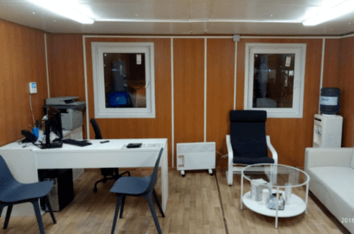 Вариант модульного здания, скомпонованного из 5 контейнеров со сложной многокомнатной организаций внутренних помещений. Имеет от семи окон, восьми межкомнатных дверей и, опционально, рядом дополнительных систем и оборудования, как электропроводка, сантехника, обогреватели и кондиционеры. Ориентирован для использования в качестве административных и офисных сооружений в коммерческом и государственном секторе.